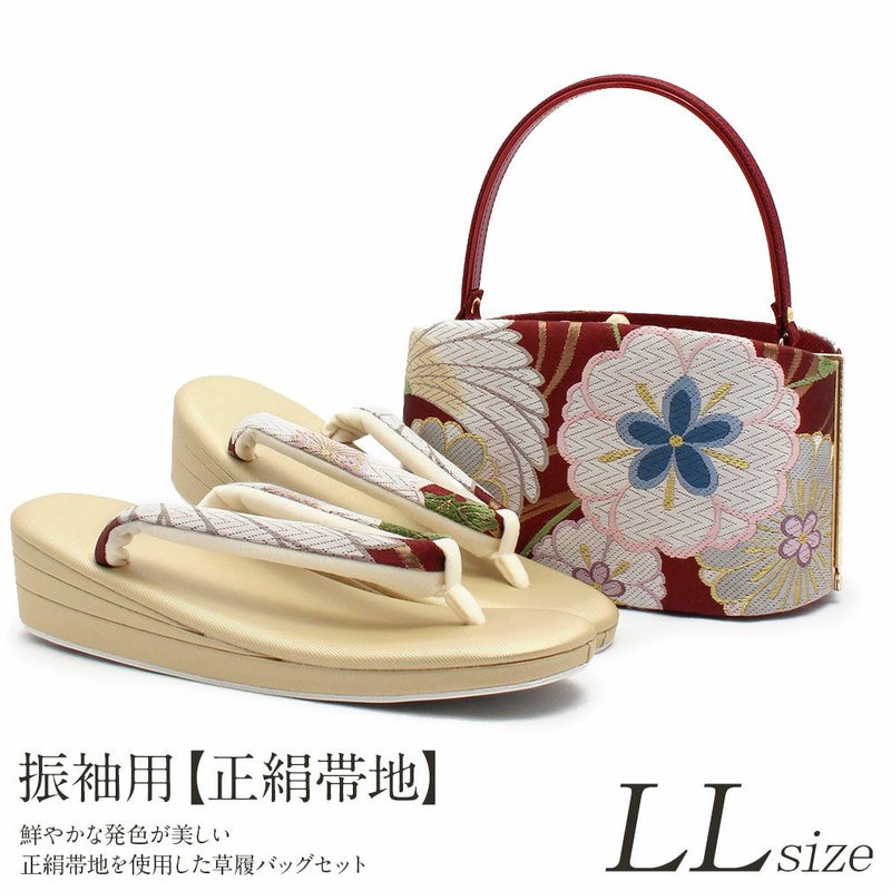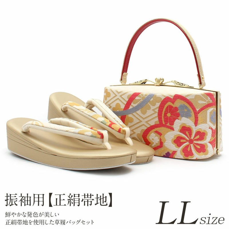 草履バックセット 成人式 振袖 正絹帯地 華紋 正絹 LLサイズ