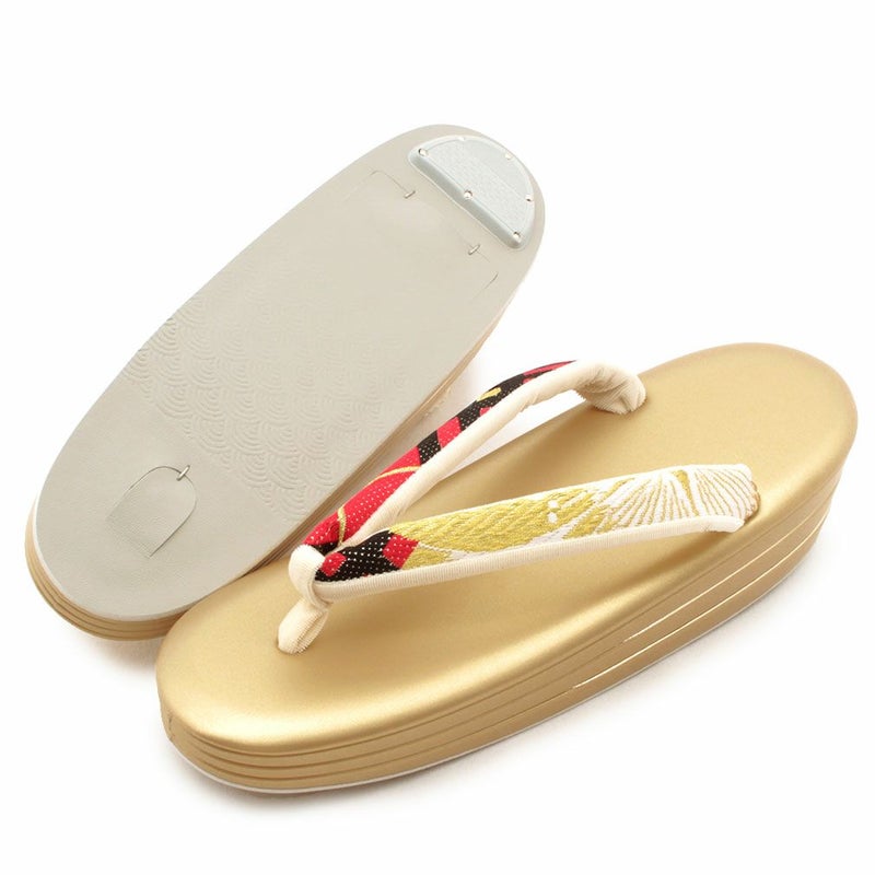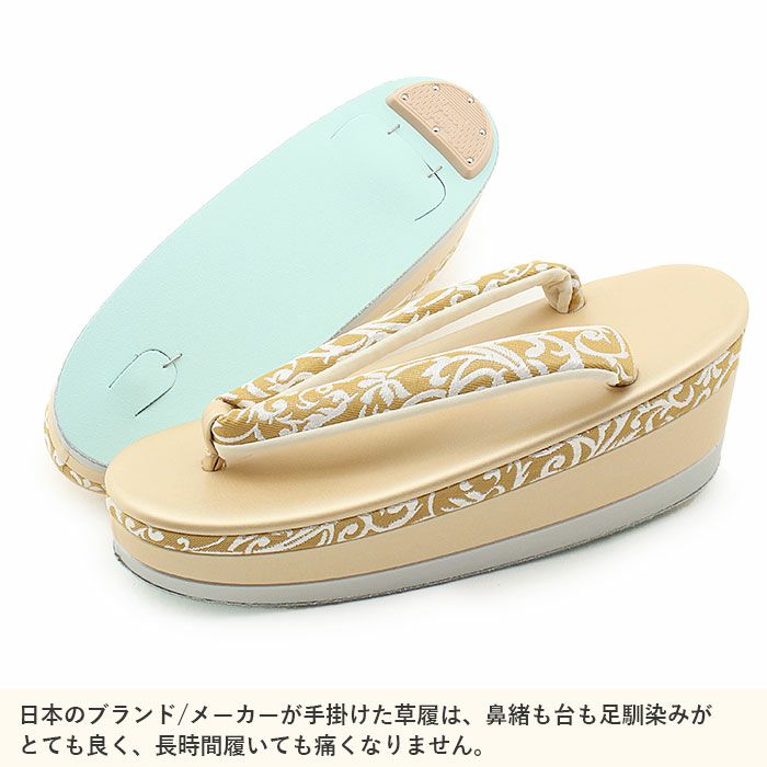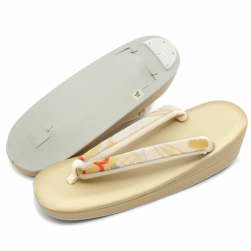 歩きやすい優花緒、初めての方にも安心の履き心地 草履バッグセット 成人式 振袖用 卒業袴 成人用 Sサイズ 金 ゴールド ホワイト 華紋 正絹帯地 2枚芯 優花緒 日本製