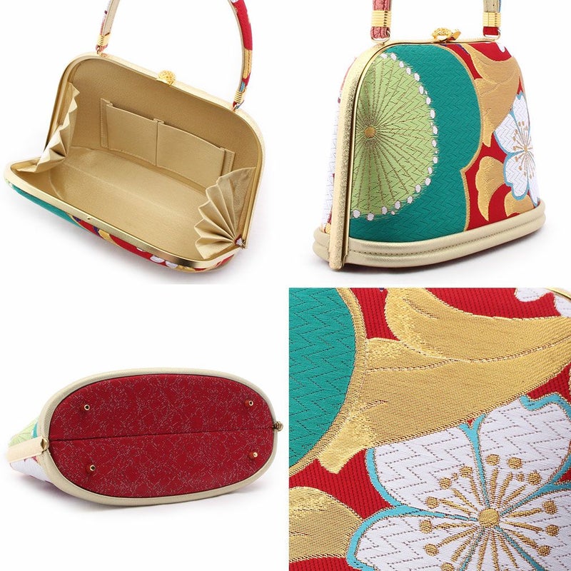 成人式や結婚式の華やかな振袖に アウトレット 振袖 草履 バッグ セット 成人式 草履バッグセット 振袖用 振り袖 フリーサイズ Lサイズ 華紋 桜 赤 金 橙 白 正絹帯地 日本製