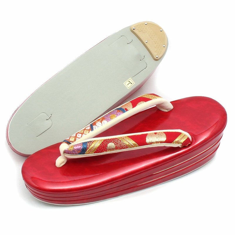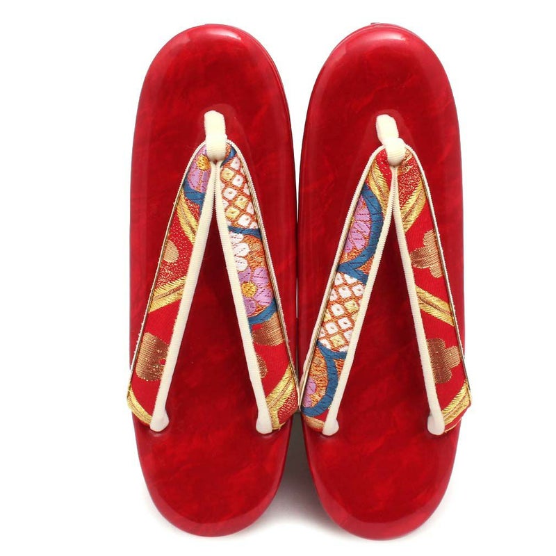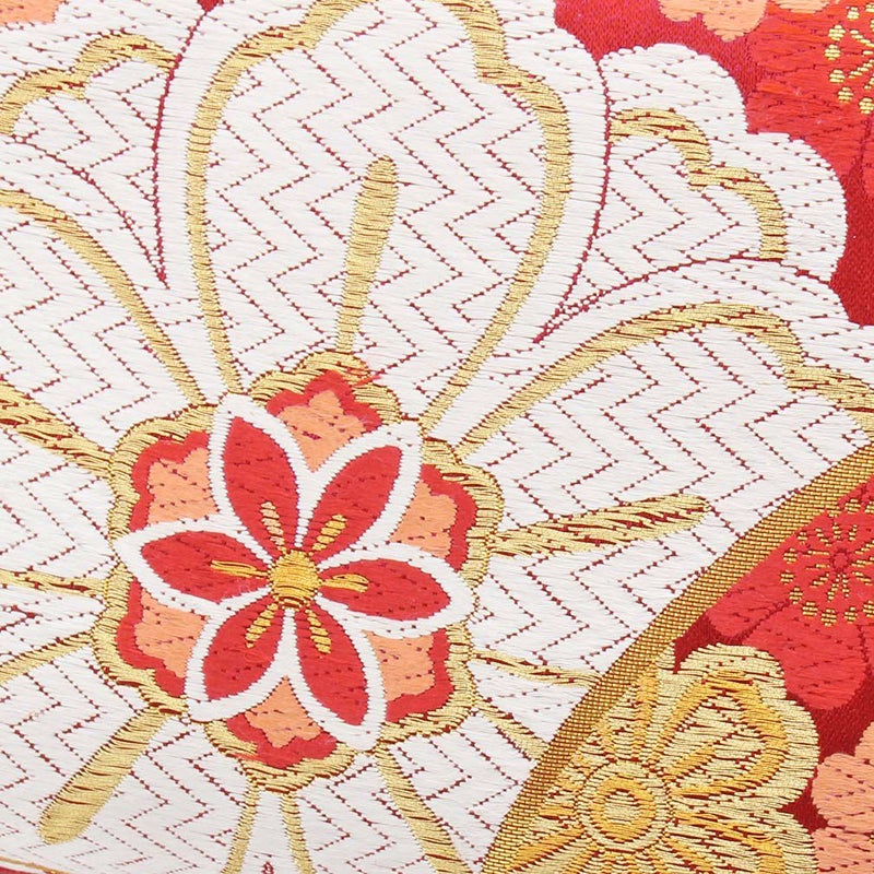 草履バッグセット 成人式 振袖用 フリーサイズ Lサイズ 日本製 帯地 <レッド/紗綾型に菊など> SoNaTa