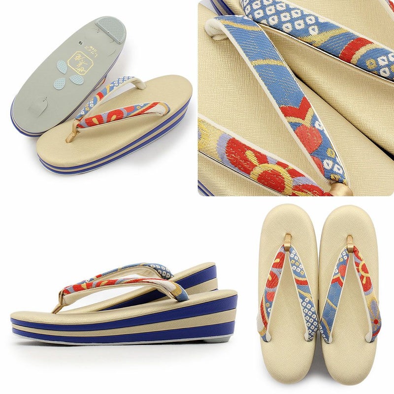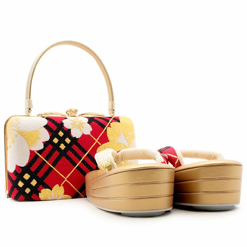 草履バッグセット 礼装用 <浅草匠> Lサイズ キステオリジナル <ゴールド系・赤青/花紋> 日本製