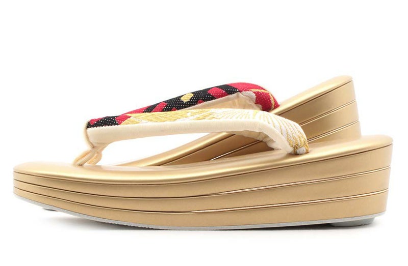 痛くなく歩きやすい、初めての方にも安心の履き心地 草履バッグセット 振袖用 紗織 沙織 Mサイズ Lサイズ 金 ゴールド 西陣織 正絹 帯地 4枚芯 厚底 ハイヒール 日本製