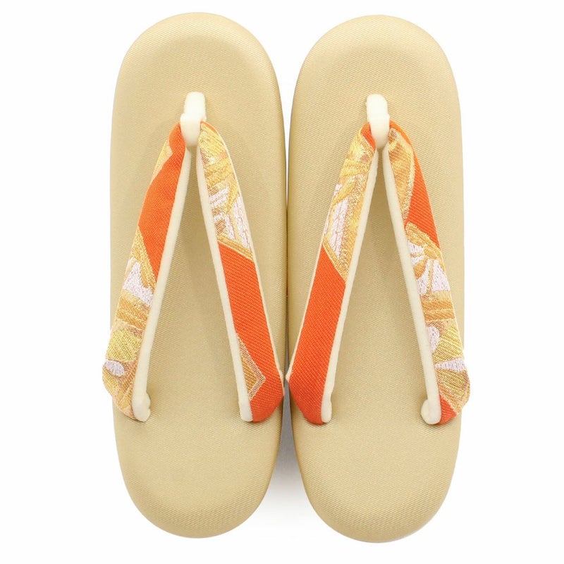 草履バッグセット 草履 セット フリーサイズ Lサイズ Lサイズ 橙 金 赤 花菱 華紋 正絹帯地