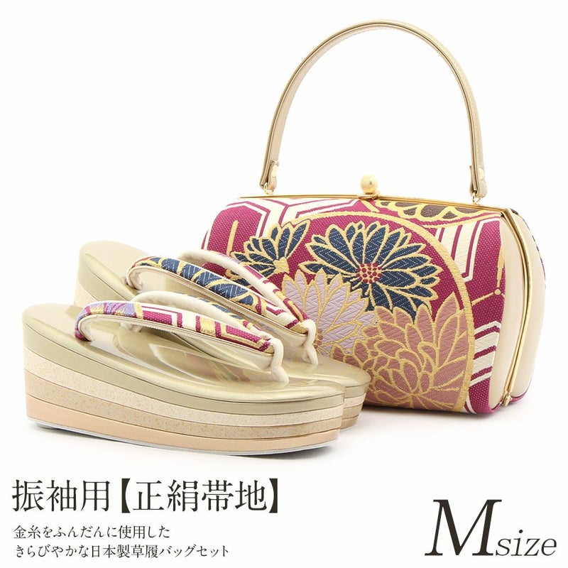 草履バックセット 成人式 振袖 花 華紋 花紋 正絹帯地 日本製 Sサイズ