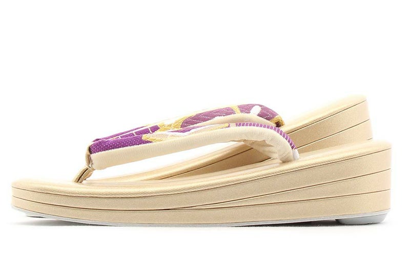 成人式や結婚式の華やかな振袖に合わせたい草履バッグセット。 草履バッグセット 振袖用 Lサイズ フリー 紫 クリーム 亀甲 桜 正絹 2枚芯 優花緒 華三彩 日本製
