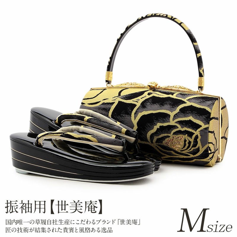 草履バックセット 成人式 振袖 世美庵 Mサイズ 薔薇 正絹帯地