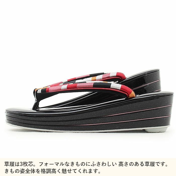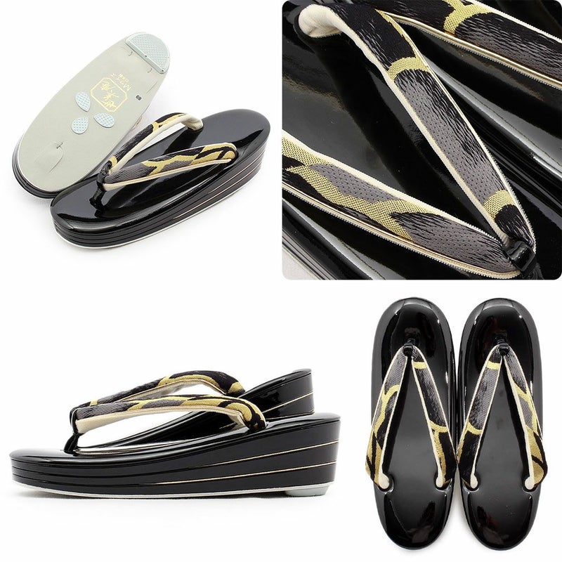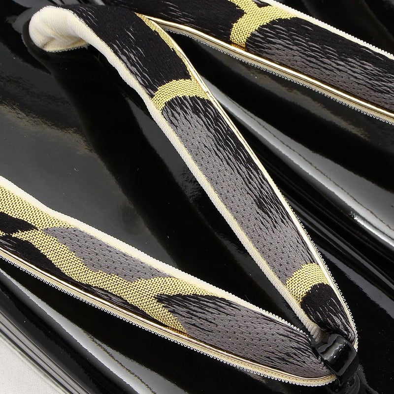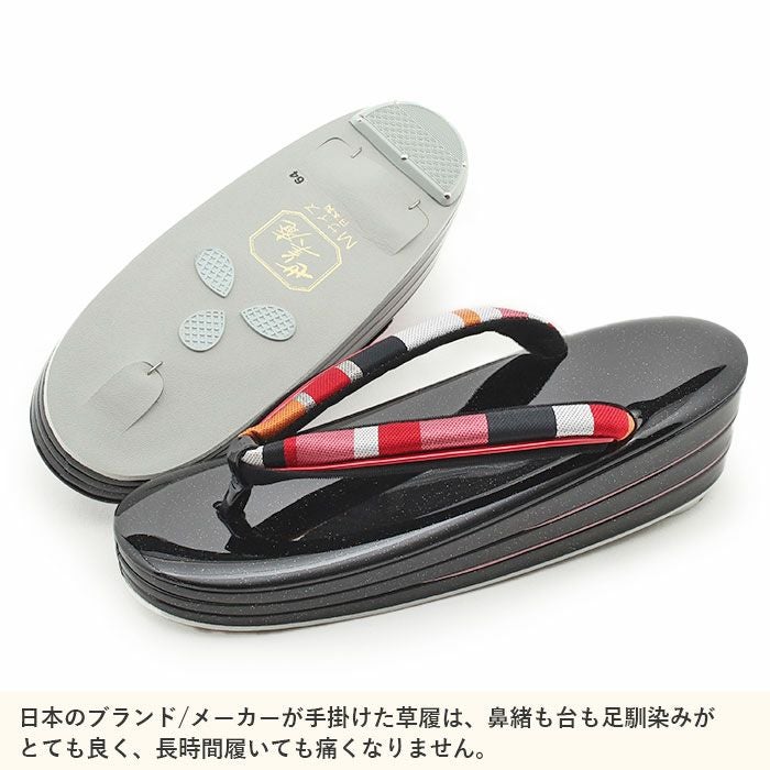 痛くなくて歩きやすい、初めての方にも安心の履き心地 振袖 成人式 草履バッグセット 振袖用 振り袖 フリー Lサイズ ブラック 黒 金 華紋 帯地 エナメル ラメ 3枚芯 ハイヒール 厚底 日本製