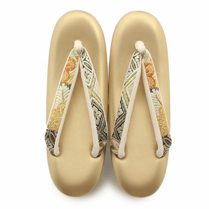 痛くなく歩きやすい、初めての方にも安心の履き心地 振袖 草履バッグセット 成人式 草履バッグセット 振袖用 紗織 LLサイズ 大きい 金 西陣織 正絹帯地 花七宝 2の3枚芯 日本製 パールトーン加工