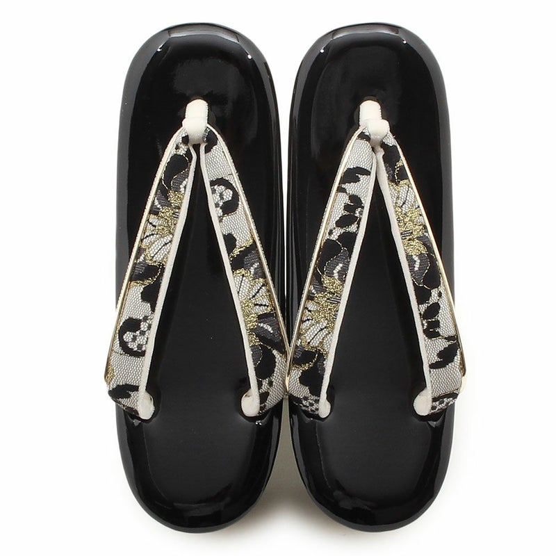 痛くなくて歩きやすい、初めての方にも安心の履き心地 振袖 草履バッグセット 成人式 草履バッグセット 振袖用 フリー Lサイズ ブラック ホワイト 洋唐花 織生地 2枚芯