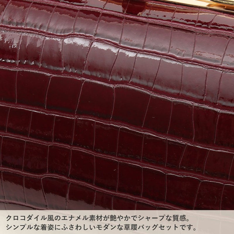 成人式 草履バックセット 振袖 クロコダイル風 エナメル Lサイズ フリーサイズ