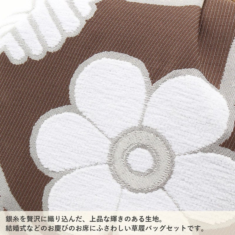 痛くない 歩きやすい、初めての方にも安心の履き心地 振袖 草履バッグセット 成人式 草履バッグセット 振袖用 振り袖 フリー Lサイズ ブラウン シルバー 茶 銀 華紋 花七宝 帯地 エナメル 2枚芯 日本製