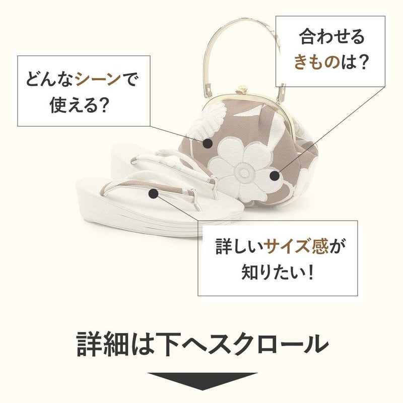 痛くない 歩きやすい、初めての方にも安心の履き心地 振袖 草履バッグセット 成人式 草履バッグセット 振袖用 振り袖 Mサイズ ブラウン ゴールド 茶 白 灰 金 大花 華紋 鱗 帯地 2枚芯 日本製