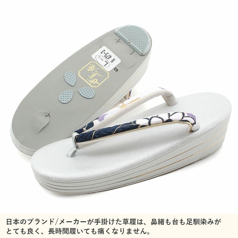 痛くなくて歩きやすい、初めての方にも安心の履き心地 振袖 成人式 草履バッグセット 振袖用 振り袖 フリー Lサイズ ホワイト 白 金 薄灰 華紋 幾何学 帯地 エナメル 2枚芯 日本製