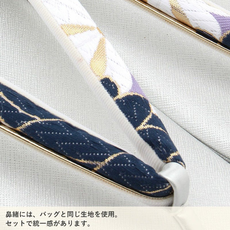 成人式や結婚式の華やかな振袖に合わせたい草履バッグセット。 草履バッグセット 成人式 振袖用 成人用 浅草匠 Mサイズ 紺 銀 幾何学 正絹帯地 3枚芯 日本製