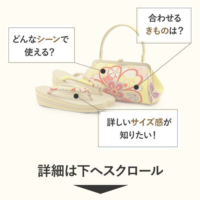 成人式や結婚式の華やかな振袖に合わせたい草履バッグセット。 草履バッグセット 振袖用 フリー Lサイズ 黄色 唐草 正絹 彩小路 3枚芯 ハイヒール 厚底 がま口 日本製