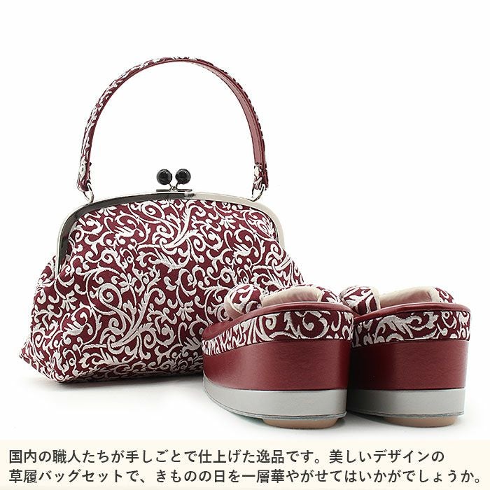 草履バッグセット 振袖用 フリーサイズ Lサイズ 日本製 京都西陣 <エンジ/吉祥花尽くし>