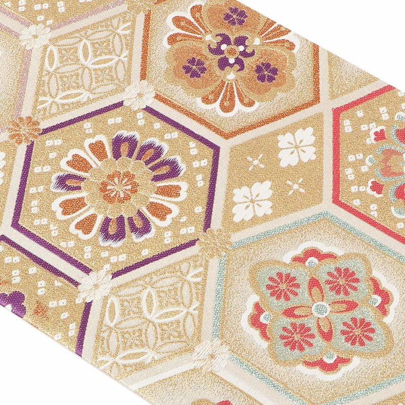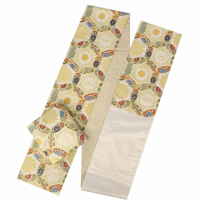 《お仕立て上り》【最短日お届け】振袖などのフォーマルなお着物に 振袖 帯 袋帯 成人式 クリーム 毘沙門亀甲 花丸紋 西陣織 大光織物 仕立て上がり 新品 帯単品