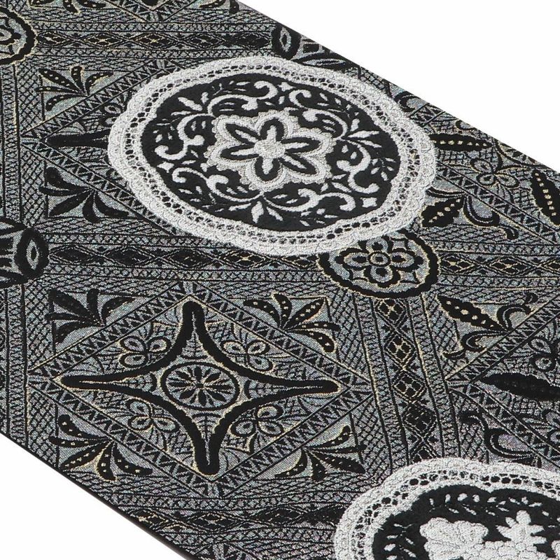 《お仕立て上り》【最短日お届け】夏の小紋 紋紗 色無地 御召 などのお着物に 名古屋帯 夏 夏名古屋帯 夏帯 黒 サークル レース柄 刺繍 スパンコール Tomogisu Craft 普段用 九寸 仕立て上がり 絹