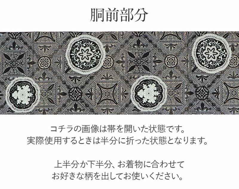 《お仕立て上り》【最短日お届け】春 秋 冬 袷 単衣の時期のお着物に 名古屋帯 黒 万華鏡 西陣織 都織物 普段用 九寸 仕立て上がり 絹 未使用 新品 春 秋 冬