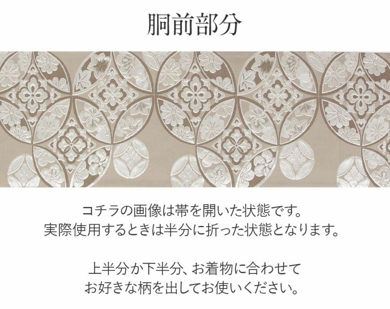 《お仕立て上り》【最短日お届け】春 秋 冬 袷 単衣の時期のお着物に 名古屋帯 クリーム 薄茶 花丸紋 花唐草 西陣織 弥栄織物 普段用 九寸 仕立て上がり 絹 未使用 新品 春 秋 冬