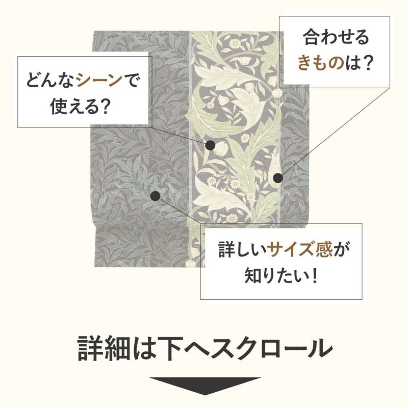 【最短日お届け】≪うれしづくし≫小紋・紬・色無地などカジュアルな着物に 帯 京袋帯 正絹 お仕立て上がり ブラウン モリスリーフ 日本製 うれしづくし