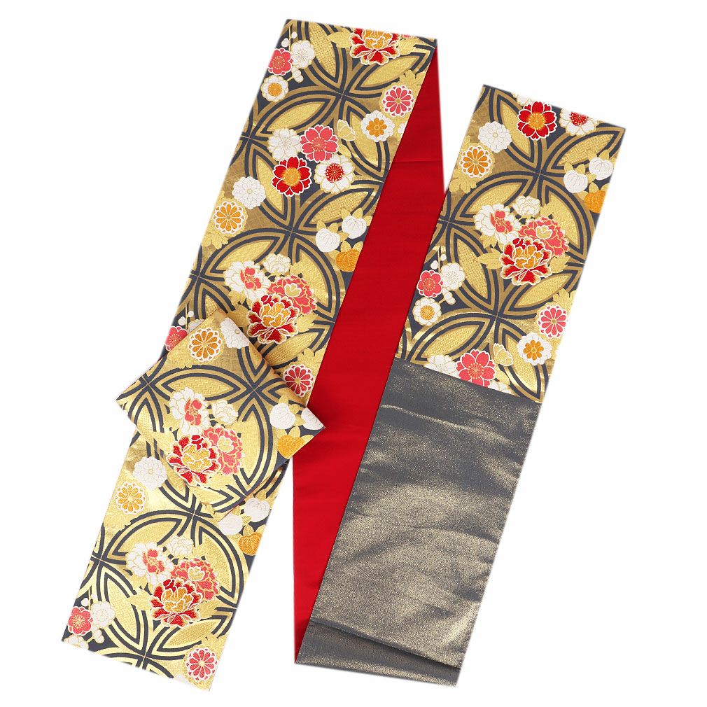 《お仕立て上り》【最短日お届け】黒留袖や色留袖、訪問着などのフォーマルなお着物に 袋帯 帯 留袖 訪問着 <ベージュ、ゴールド/菱に草花> 絹 <西陣・大光> 仕立て上がり