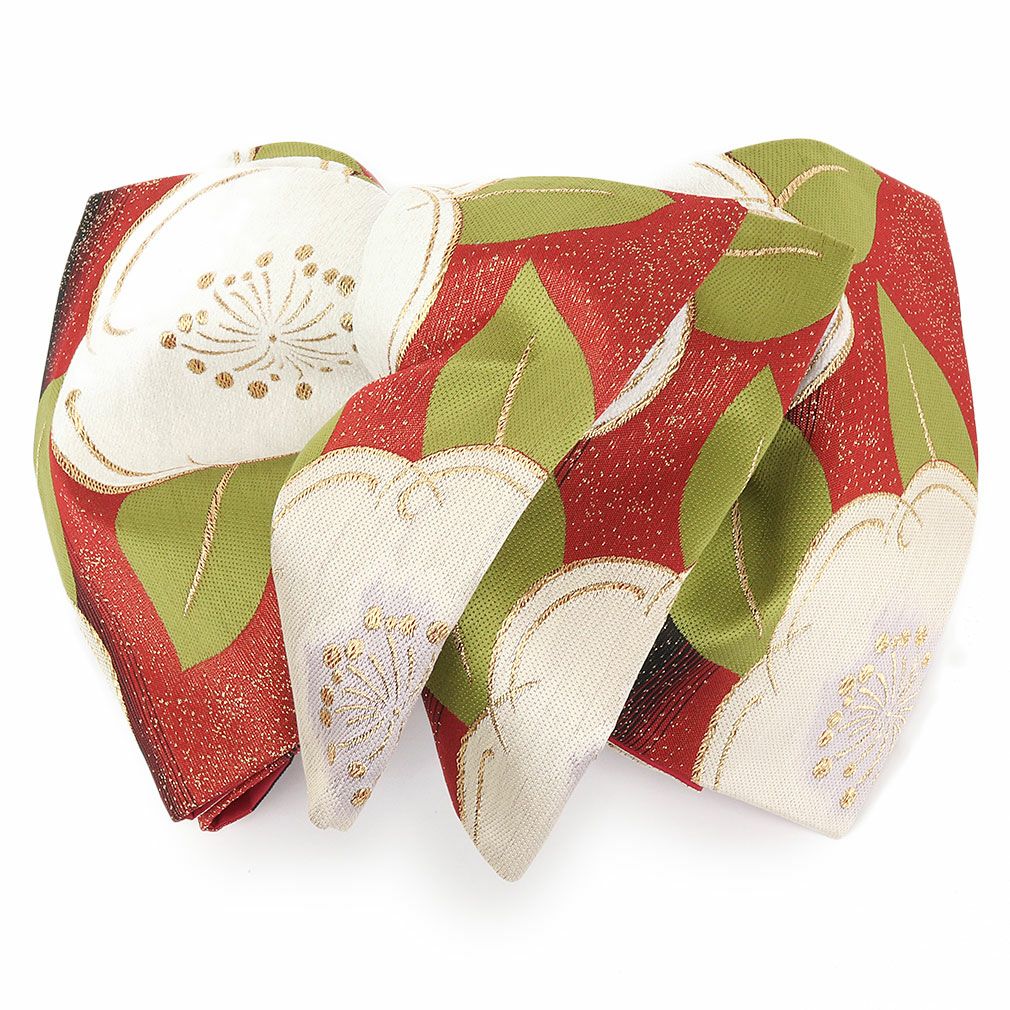 名古屋帯 <お仕立て上がり> 正絹九寸名古屋帯 <ワインレッド/菊 鹿の子> お太鼓柄