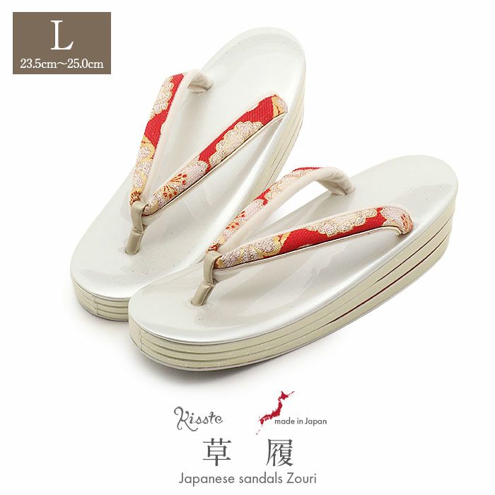 ≪在庫限り≫ 成人式や結婚式の華やかな振袖や卒業袴に 草履 成人式 振袖用 成人用 レディース 華三彩 L シルバー 銀 赤 花文 帯地 合皮 3枚芯 銀たたき 日本製 振袖 卒業袴 振り袖 ママ振