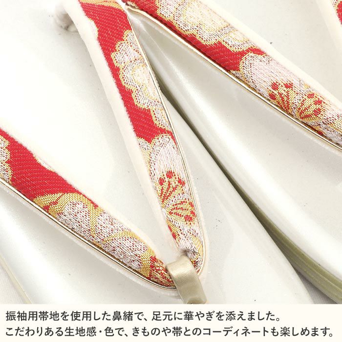 痛くなくて歩きやすい、初めての方にも安心の履き心地 成人式 草履バックセット 振袖 草履バッグセット 草履 バッグ フリー L ホワイト ゴールド 白 金 牡丹 花文 振袖用帯地 エナメル 2枚芯 日本製