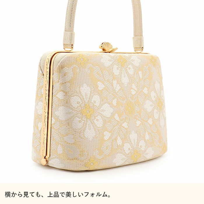 ≪在庫限り≫ あらゆる礼装に寄り添う西陣織の気品 利休バッグ 白 金 ピンク 橙 紫 亀甲 華紋 西陣織 正絹帯地 日本製 訪問着 礼装用 フォーマル 色無地 付け下げ 結婚式 お宮参り 七五三 和装バッグ フォーマル