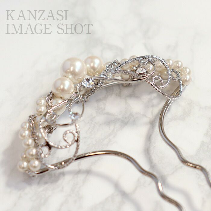 ≪在庫限り≫ 結婚式の黒留袖 色留袖や訪問着に 髪飾り かんざし 二本挿し 簪 パール バチ型 扇型 留袖髪飾り 留袖かんざし 留袖用 訪問着用 シルバー ラインストーン 日本製 フォーマル 結婚式 留袖 訪問着
