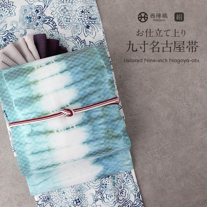 《お仕立て上り》【最短日お届け】小紋 紬 色無地 御召 などのお着物に 名古屋帯 グレー 黒 絞り柄 市松 西陣織 酒井守 普段用 九寸 仕立て上がり 絹 未使用 新品 春 秋 冬