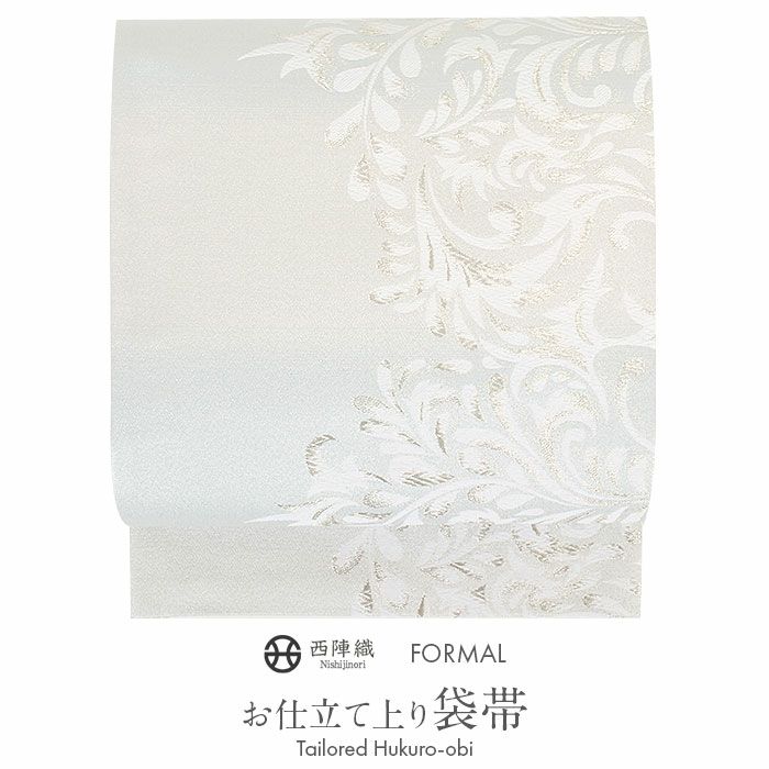 《お仕立て上り・送料込》【最短日お届け】結婚式をはじめ お宮参りや七五三などお子様行事の礼装に 袋帯 帯 フォーマル 礼装 黒留袖 色留袖 訪問着 水色 白 アラベスク 佐々木染織 西陣織 仕立て上がり 新品