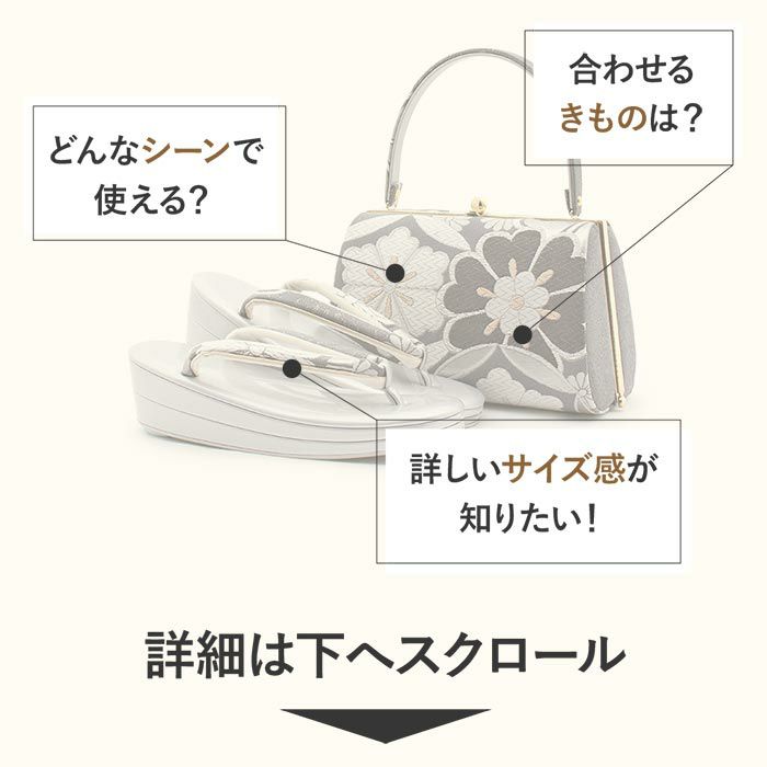 留袖用草履バッグセット 訪問着用 フリーサイズ Lサイズ 日本製 京都西陣 <シルバー/立涌に菊>