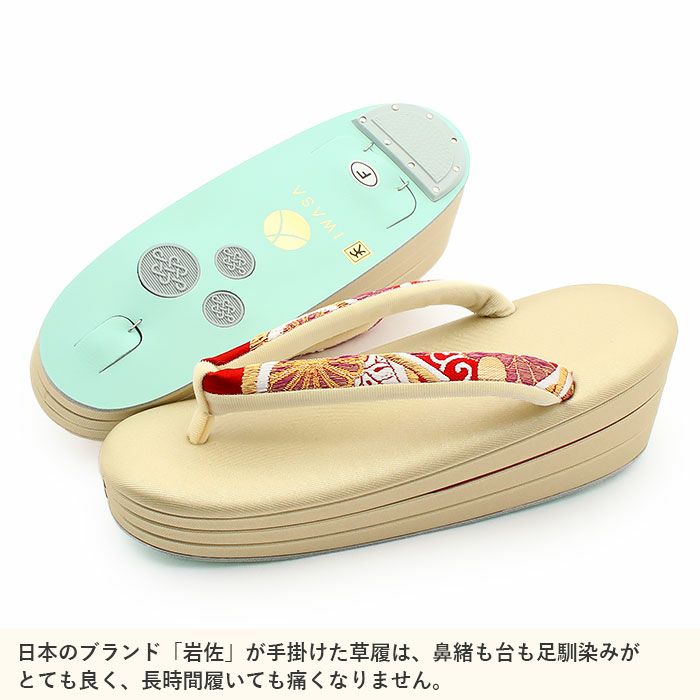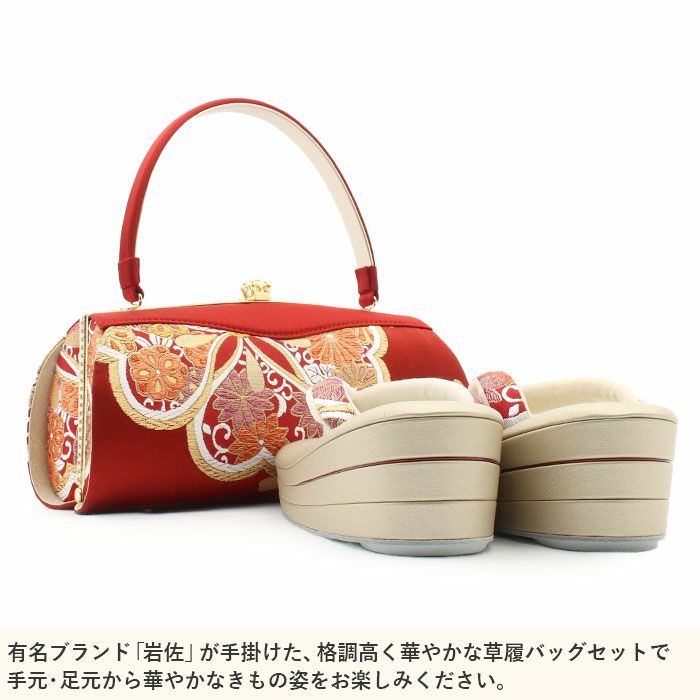 痛くなく歩きやすい、初めての方にも安心の履き心地 振袖 草履バッグセット 成人式 草履バッグセット 振袖用 岩佐謹製 フリー Lサイズ レッド 赤 ゴールド 華紋 桜 西陣織 帯地 合皮 3枚芯 日本製