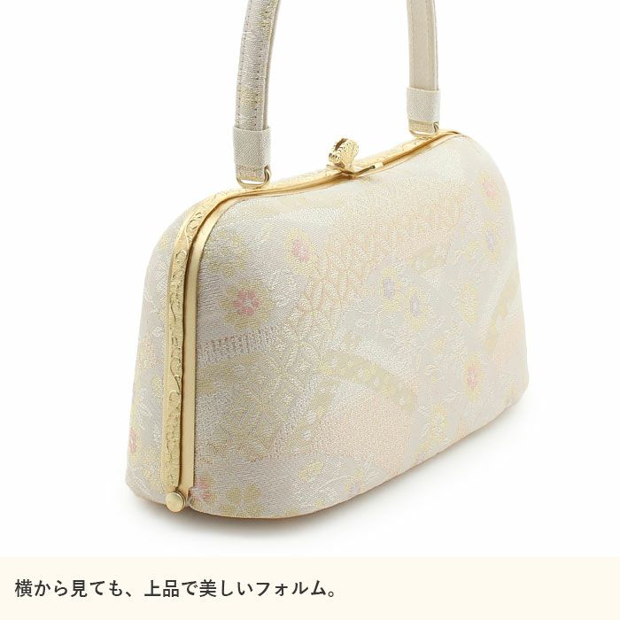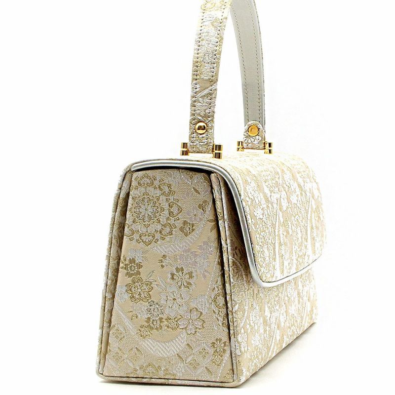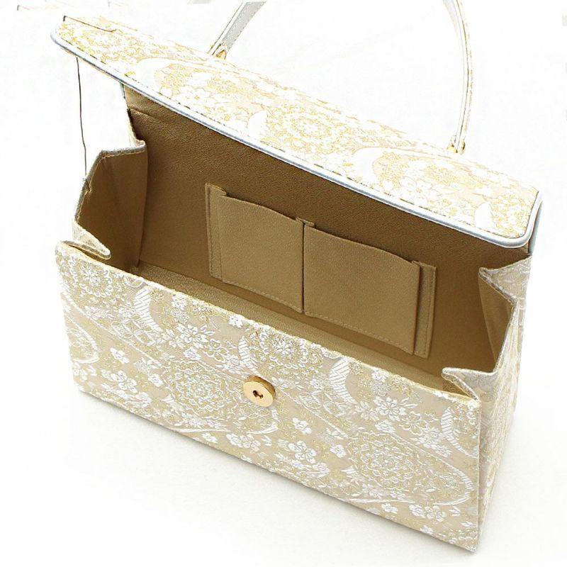 留袖用草履バッグセット 訪問着用 フリーサイズ Lサイズ 日本製 (かぶせタイプ)<シャンパンゴールド/流水に華紋>