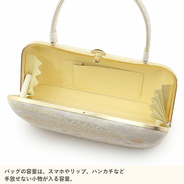 留袖用草履バッグセット 訪問着用 フリーサイズ Lサイズ 日本製 (かぶせタイプ)<シルバー・ゴールド/華紋並び>