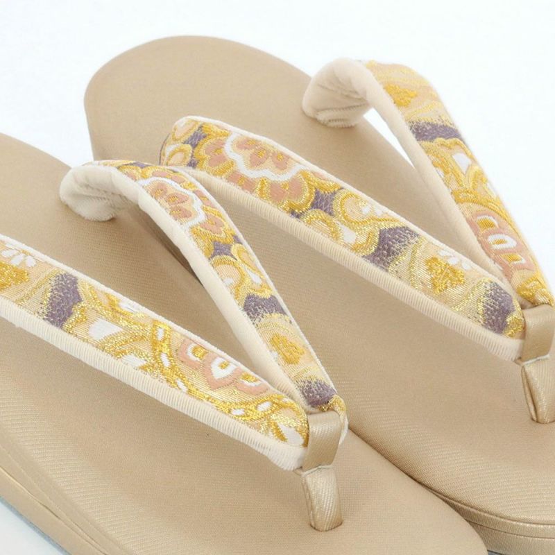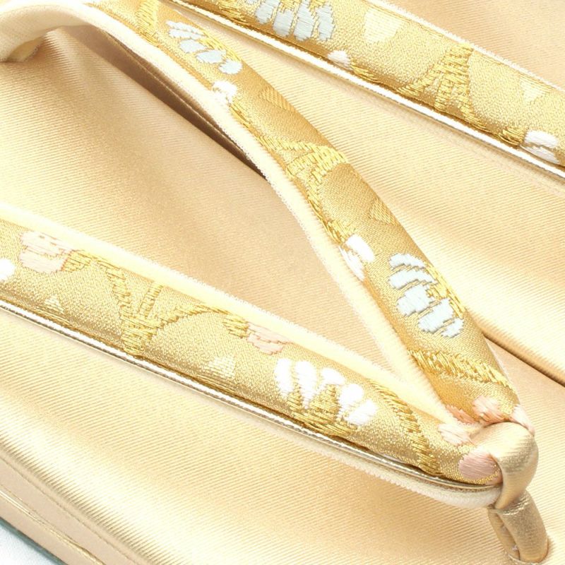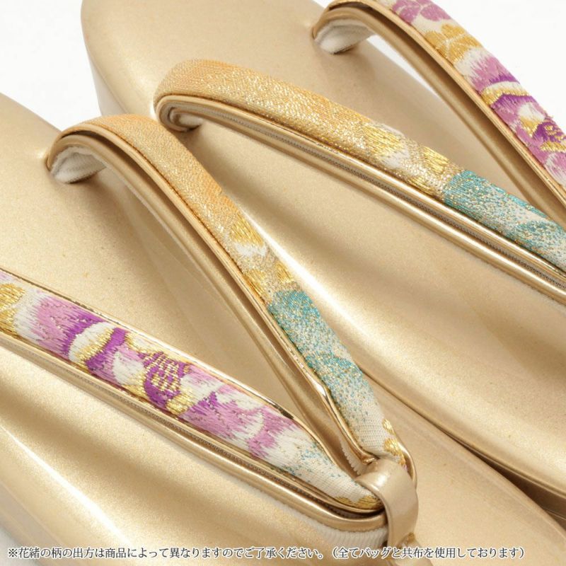 歩きやすい優花緒、初めての方にも安心の履き心地 草履バッグセット 成人式 振袖用 卒業袴 成人用 Sサイズ 金 ゴールド ホワイト 華紋 正絹帯地 2枚芯 優花緒 日本製