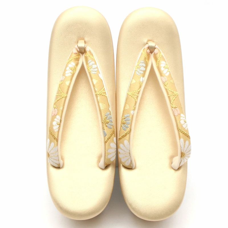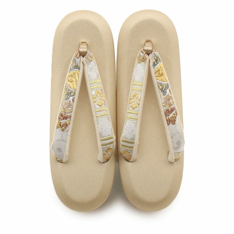 草履バッグセット 成人式 振袖用 フリーサイズ Lサイズ 日本製 帯地 <ホワイト・ゴールド/大菊>