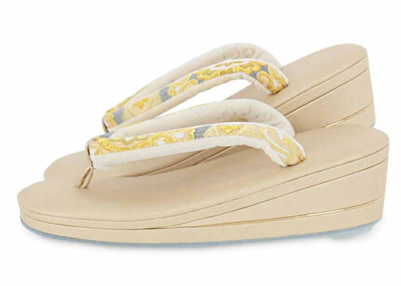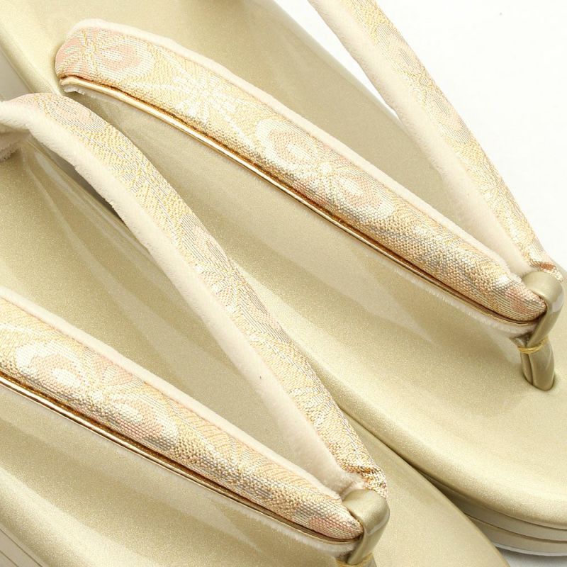痛くなく歩きやすい、初めての方にも安心の履き心地 振袖 草履バッグセット 成人式 草履バッグセット 振袖用 紗織 LLサイズ 大きい 金 西陣織 正絹帯地 花七宝 2の3枚芯 日本製 パールトーン加工