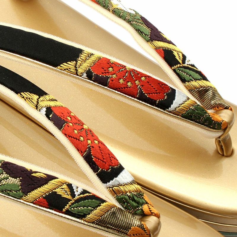 痛くなくて歩きやすい、初めての方にも安心の履き心地 振袖 成人式 草履バッグセット 振袖用 振り袖 フリー Lサイズ ゴールド ブラック 金 黒 白 桃 緑 菊 花づくし 帯地 2枚芯 日本製
