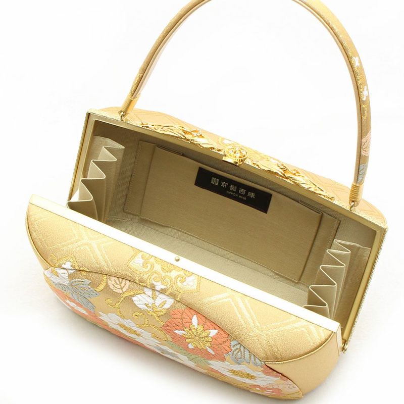 草履バッグセット 留袖用 訪問着用 フリーサイズ Lサイズ 日本製 京都西陣 <ゴールド/立涌に菊>