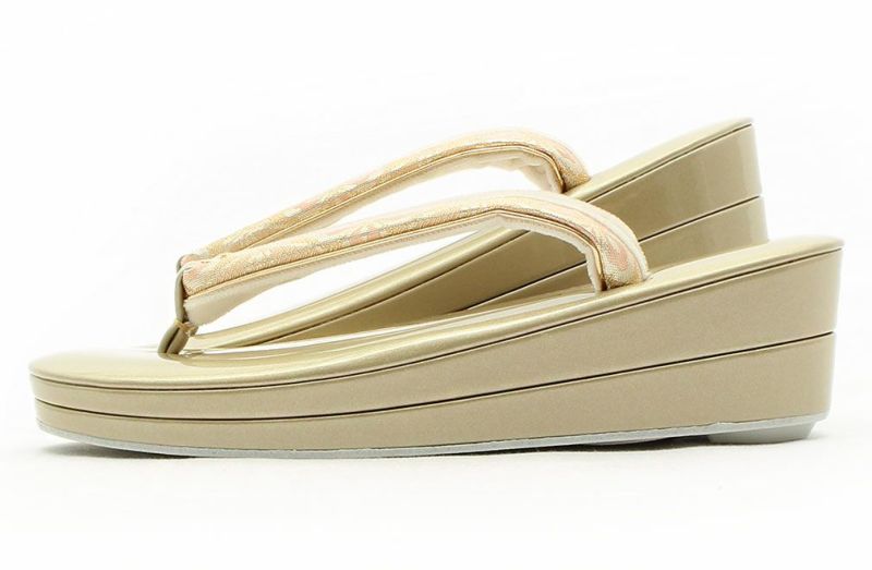 痛くなく歩きやすい、初めての方にも安心の履き心地 振袖 草履バッグセット 成人式 草履バッグセット 振袖用 紗織 フリー Lサイズ 金 花菱 西陣織 正絹帯地 3枚芯 厚底 ハイヒール ZULEN 日本製