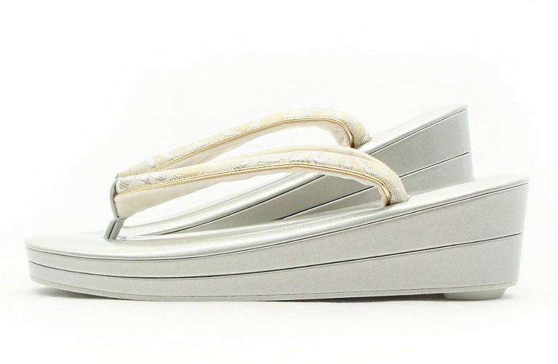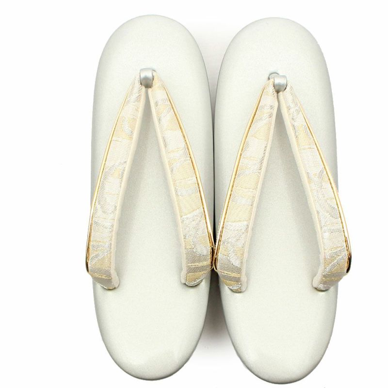 痛くなく歩きやすい、初めての方にも安心の履き心地 振袖 草履バッグセット 成人式 草履バッグセット 振袖用 紗織 Sサイズ 小さい 白 金 西陣織 正絹帯地 花菱 1の3枚芯 日本製 パールトーン加工