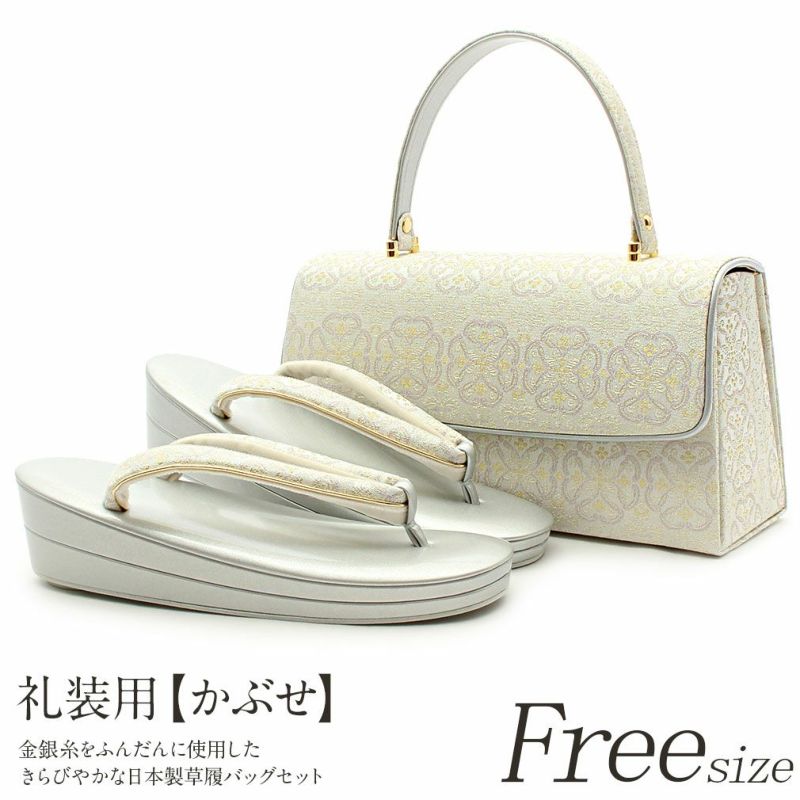 留袖用草履バッグセット 訪問着用 フリーサイズ Lサイズ 日本製 (かぶせタイプ)<シルバー・ゴールド/唐草>