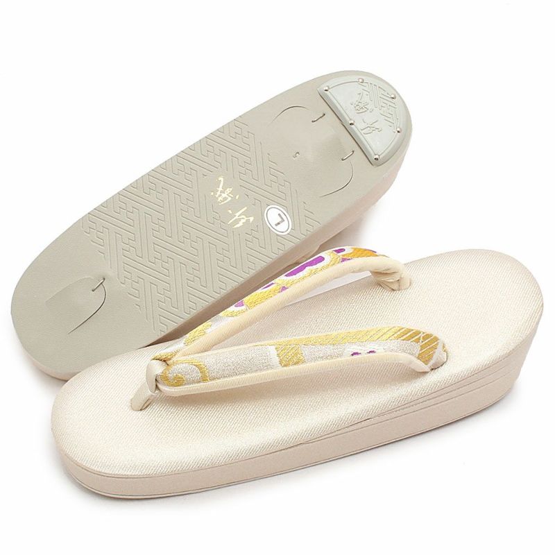 痛くなくて歩きやすい、初めての方にも安心の履き心地 振袖 成人式 草履バッグセット 振袖用 振り袖 フリー Lサイズ クリーム ゴールド 金 赤 白 紫 七宝 七宝松葉 帯地 2枚芯 日本製