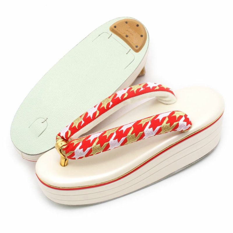 草履バッグセット 成人式 振袖用 < 紗織 キステオリジナル > Lサイズ 日本製 正絹 < ホワイト ・ レッド / 麻の葉 >