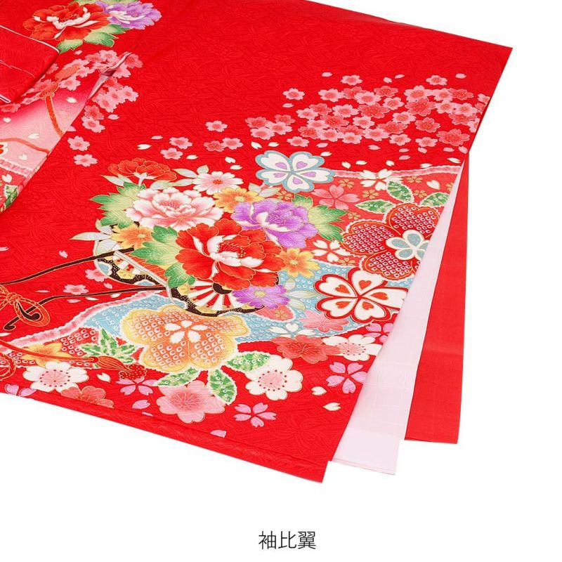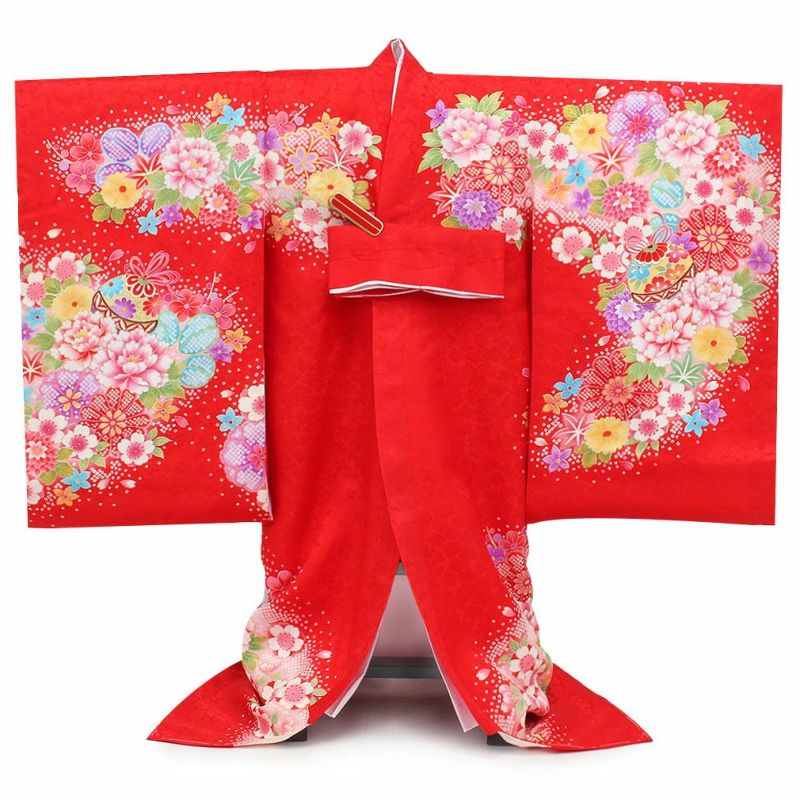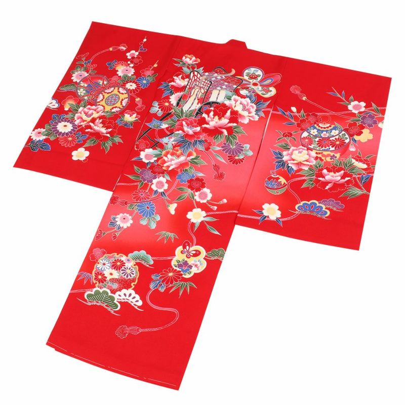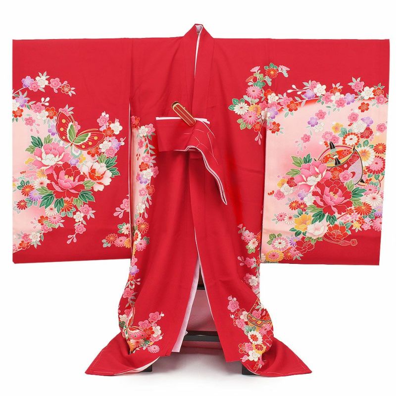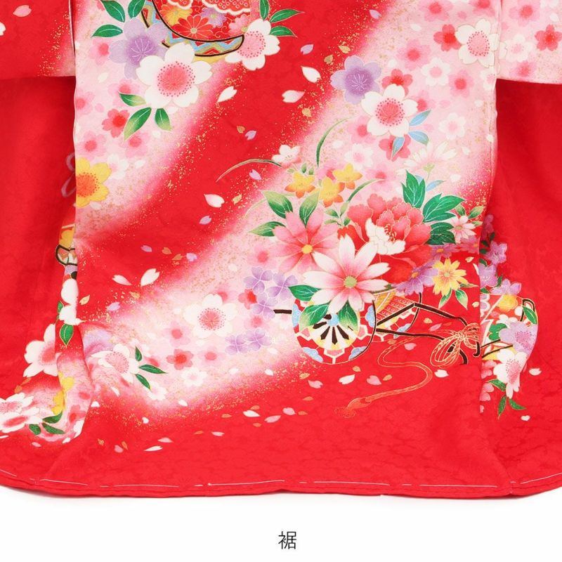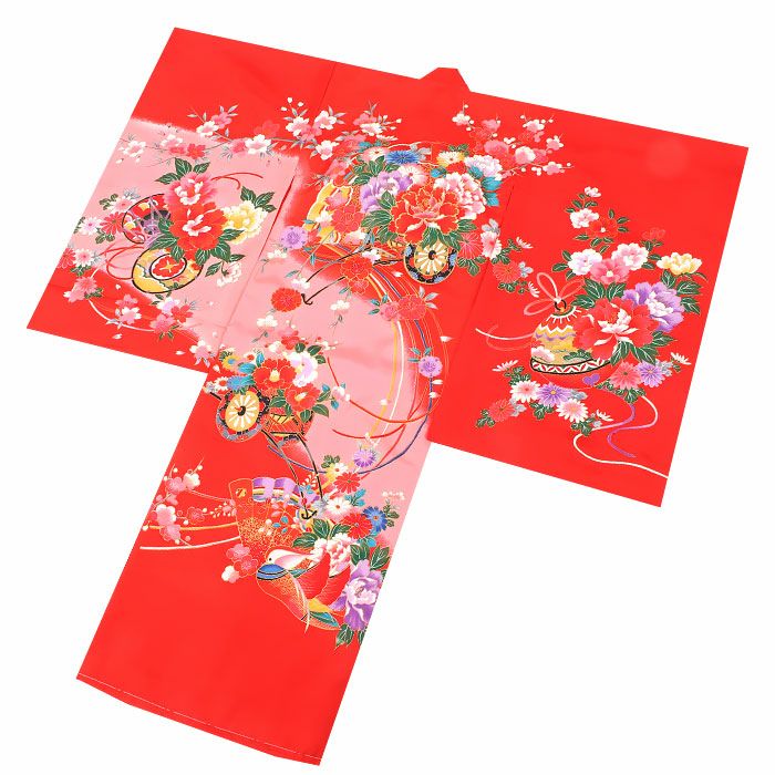 お宮参り 着物 女の子 産着 祝い着 赤 花車 鼓 鈴 牡丹 桜 正絹 のしめ 掛け着 初着 服装 赤ちゃん 販売