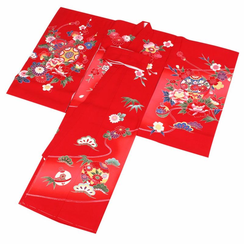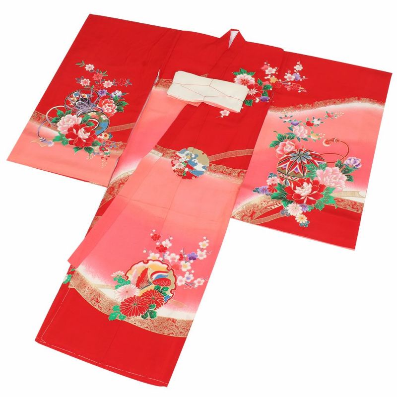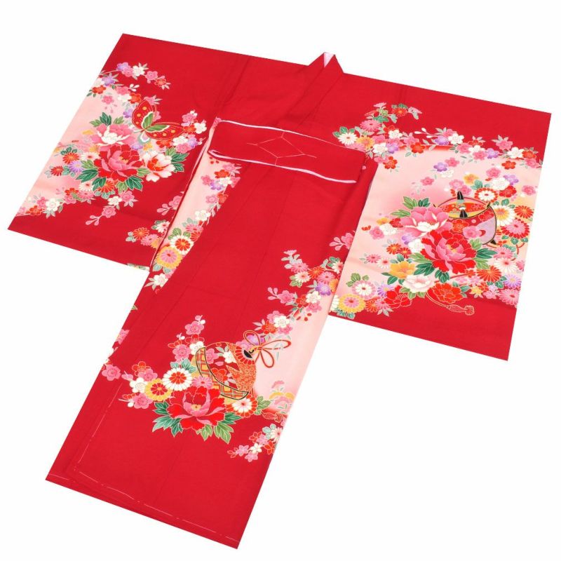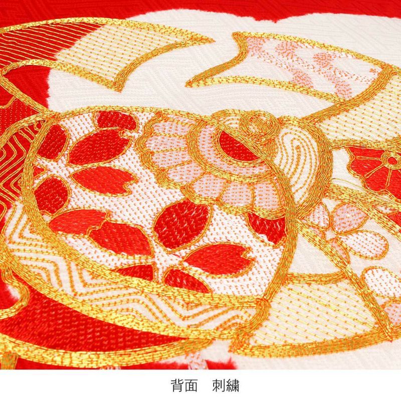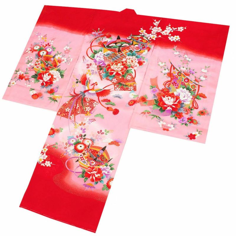 お宮参り 着物 女の子 産着 祝い着 赤 花車 鼓 鈴 牡丹 桜 正絹 のしめ 掛け着 初着 服装 赤ちゃん 販売