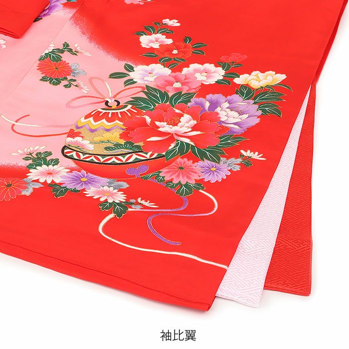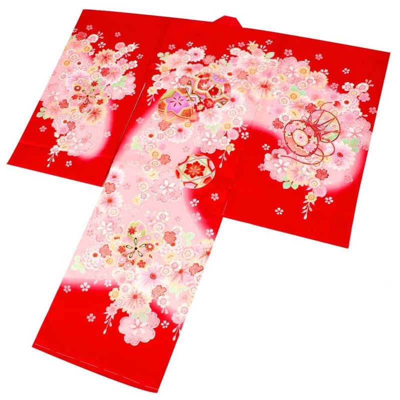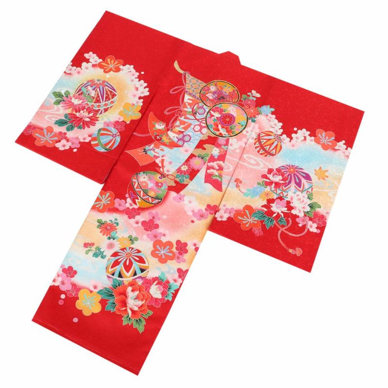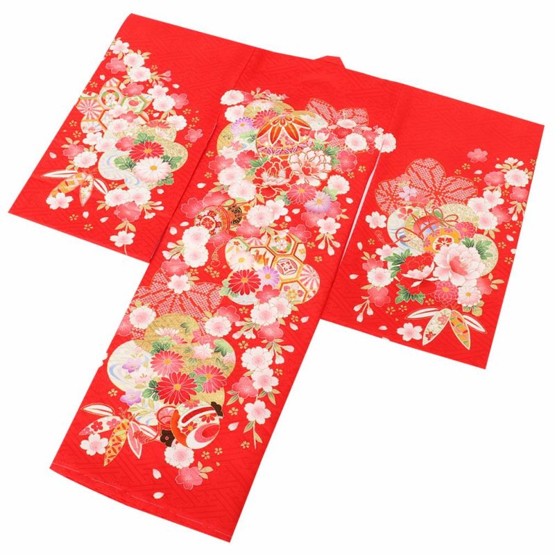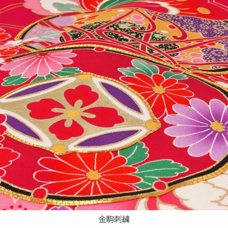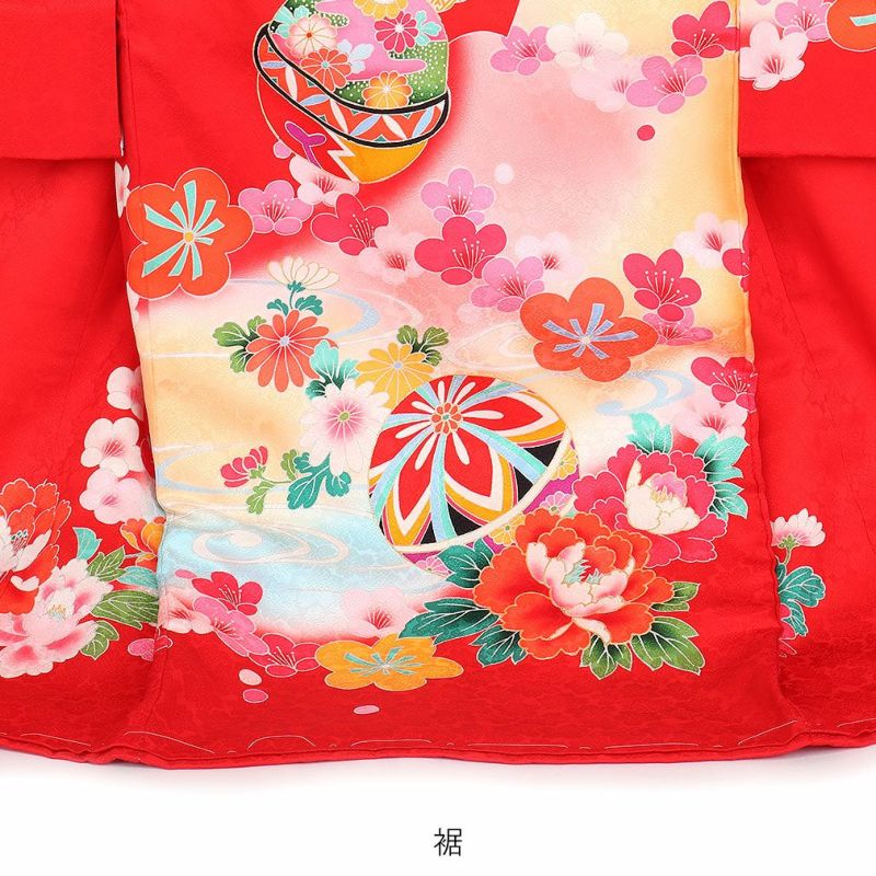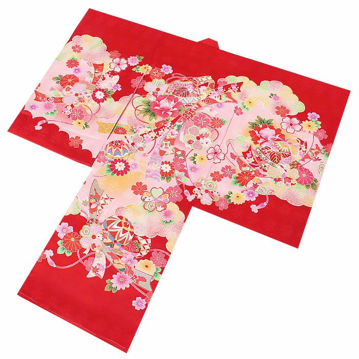 祝い着にふさわしい美しい正絹友禅 お宮参り 着物 女の子 産着 祝い着 赤 桃 橙 鞠 桜 梅 橘 雪輪 鹿の子 疋田 吉祥紋 正絹 友禅 金駒刺繍 刺繍 金彩 新品 日本製
